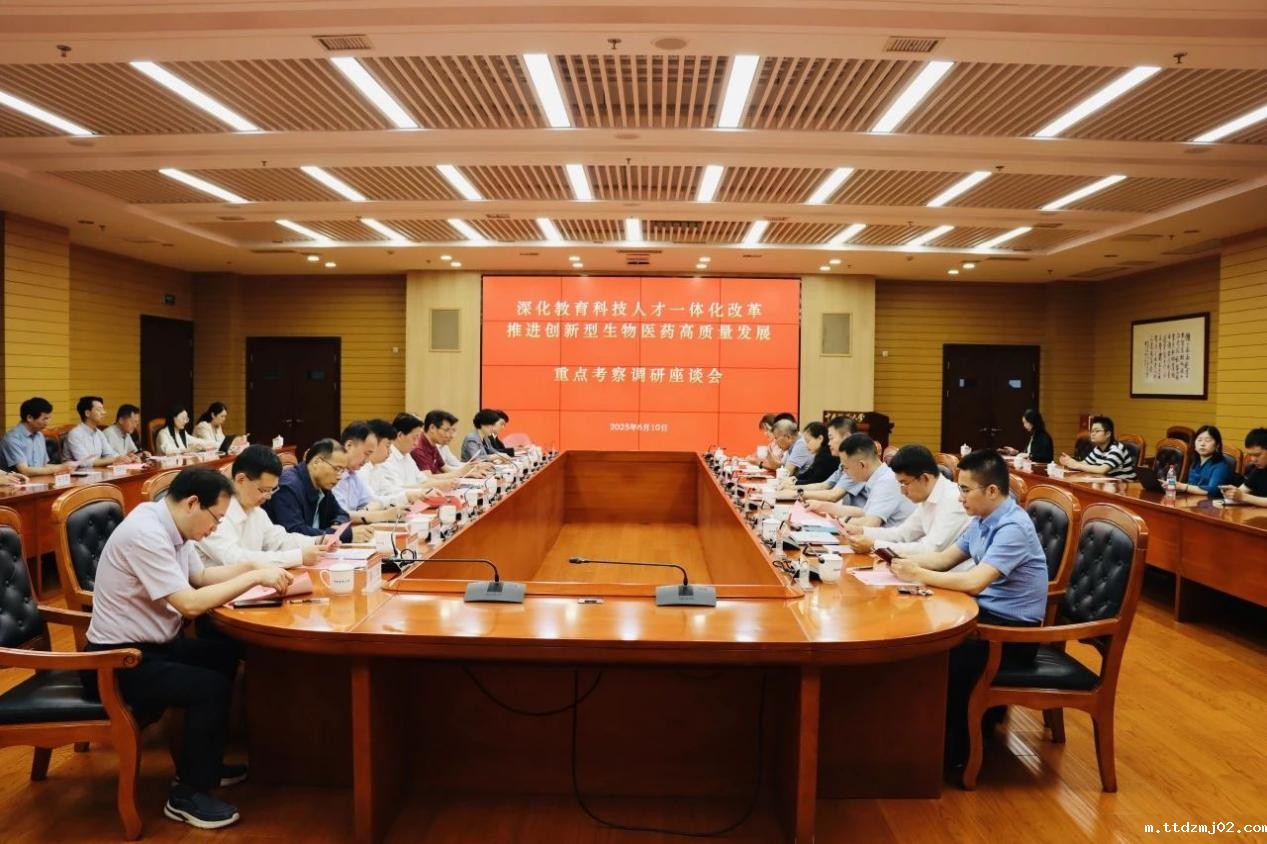 根据中共江苏省委批示,6月10日上午,省政协副主席、民盟省委会主委胡刚率队围绕“深化教育科技人才一体化改革,推进创新型生物医药高质量发展”开展2025年度重点考察调研,民盟省委会副主委、华体汇app全站版校长郝海平,民盟省委会专职副主委冯泉参加。省委组织部和省发改委、省科技厅、省工信厅、省卫健委、省药监局等6个省级部门应邀派员参与调研。